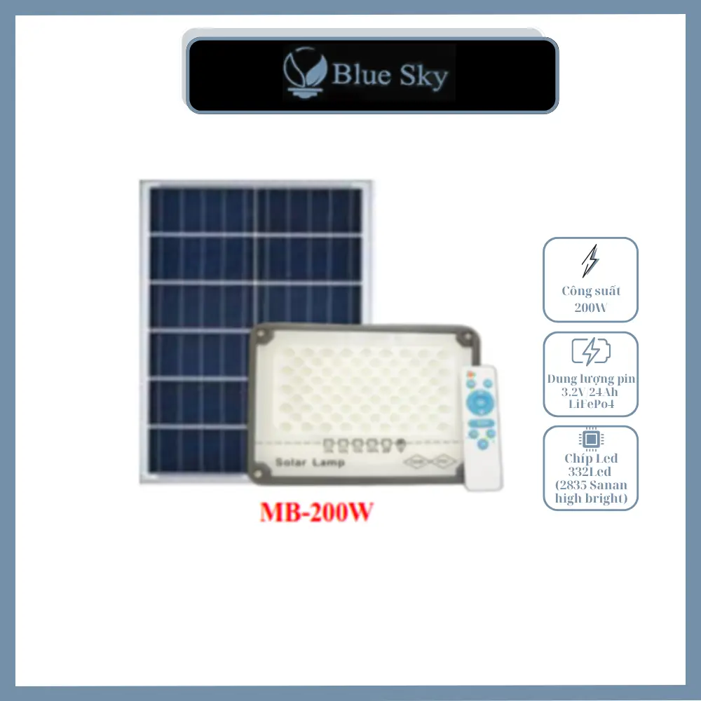| Bộ sản phẩm bao gồm | Đèn + Tấm pin NLMT + Remote |