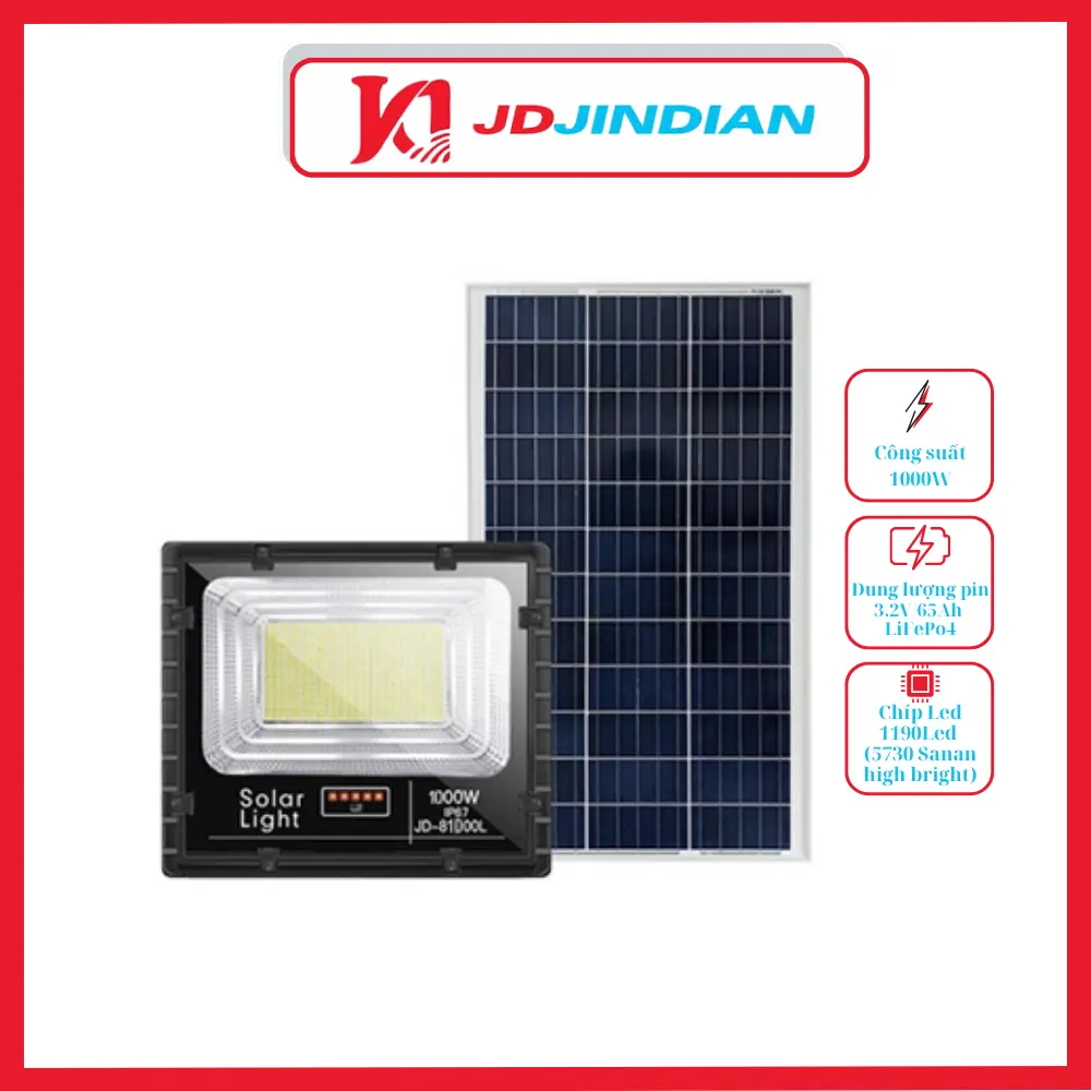 | Bộ sản phẩm bao gồm | Đèn + Tấm pin NLMT + Remote |