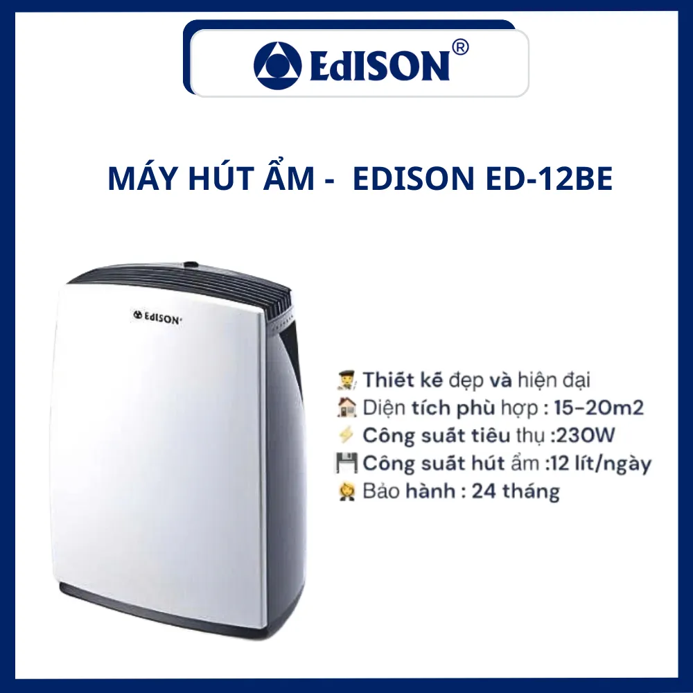- Công suất hút ẩm: Ở điều kiện 30 độ C, độ ẩm 80% (12 lít/ngày)